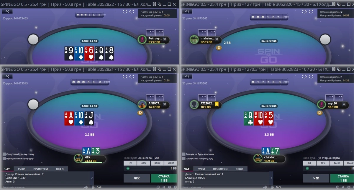. Кількість столів: 4 столи кешу або 4 столи спінів