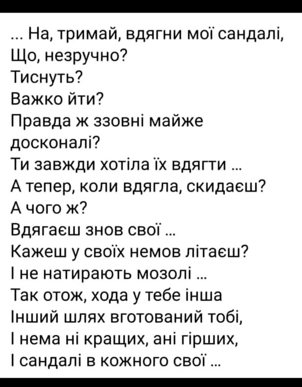 Дуже часто нам розказують як правильно жити. Але у кожного свій шлях. І ніхто не знає як тяжко по ньому йти.