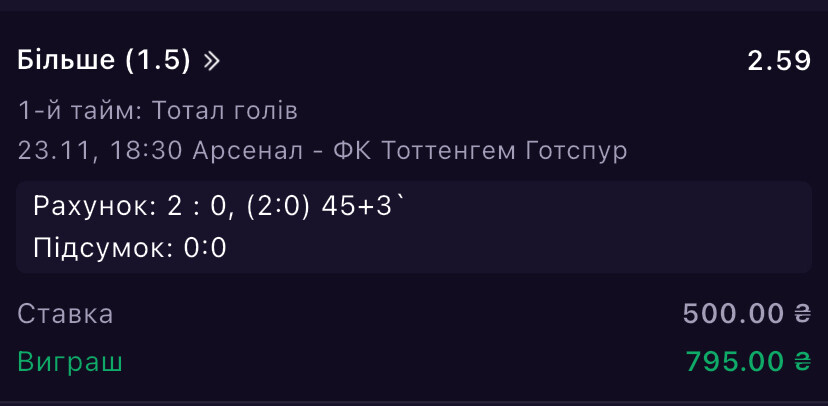 Круто мої вітання , в кінці тайму арсік зібрався порадував )