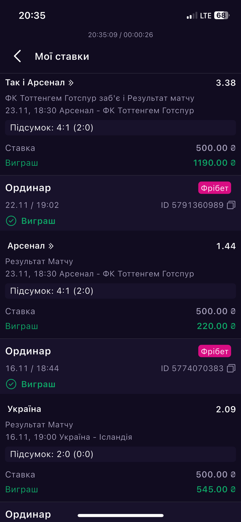 Люблю халяву як і всі. Проаналізувавши скільки голів було за останні матчі, бо я не дуже футболіст останнім часом, використав фрібет таким чином і ось що з них отримав