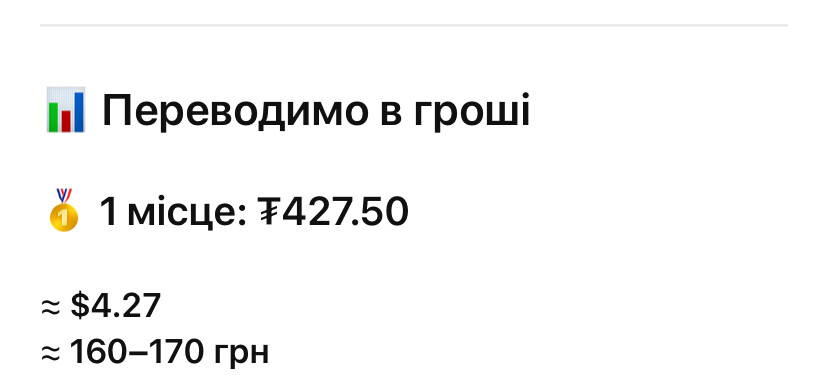 Чому 4$, із чого і в що ти це перевів?🙃 це 427$ за перше місце