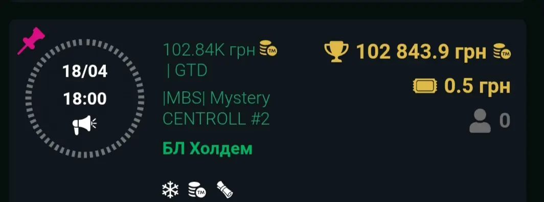 18 квітня o 18:00 відбудеться турнір з величезним призовим фондом і лише за 50 коп. Mystery CENTROLL #2.