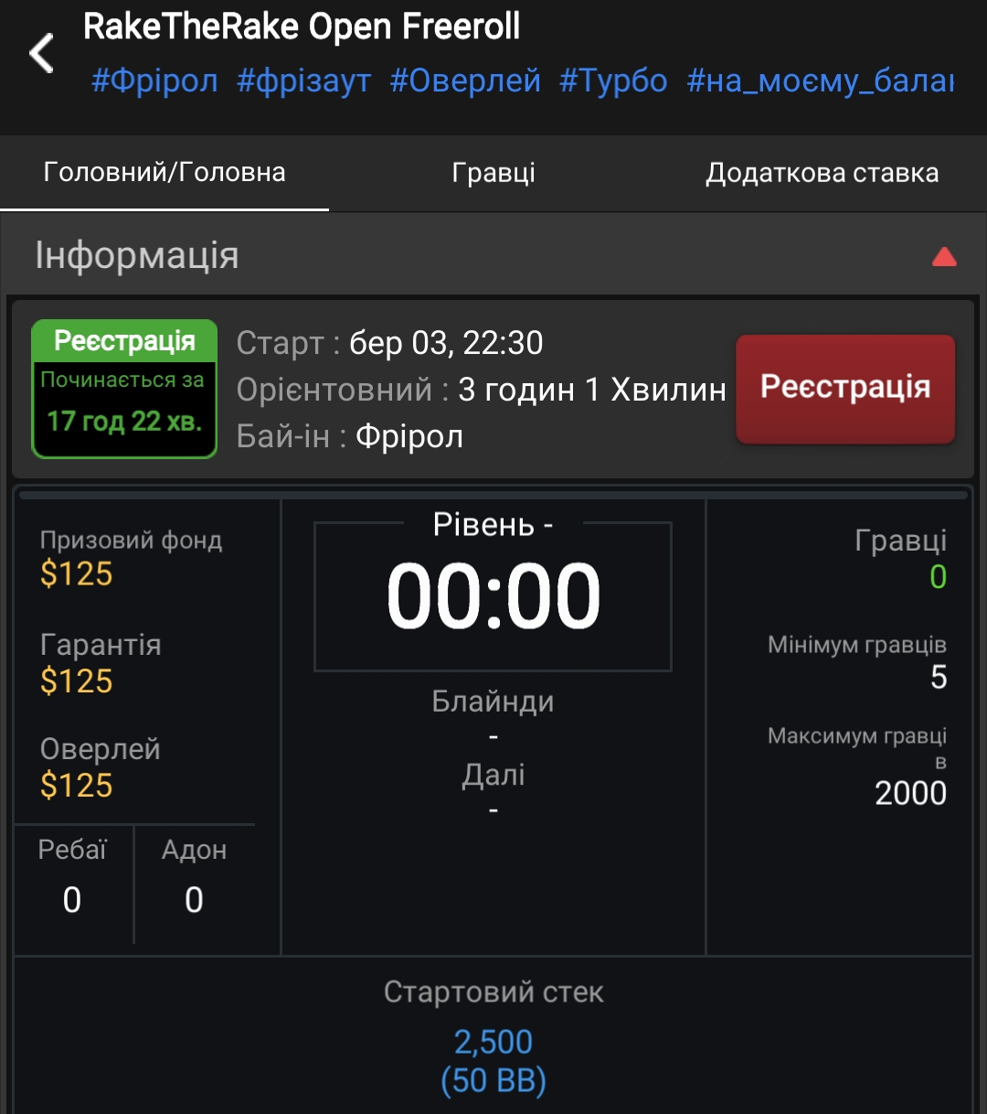 Назва: RakeTheRake Open Freeroll