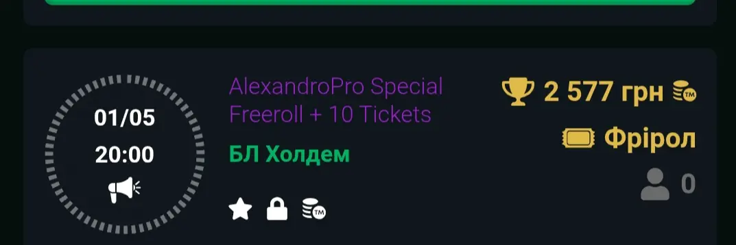 1 травня о 20:00 відбудеться AlexandroPro Special Freeroll+ 10 Tickets.