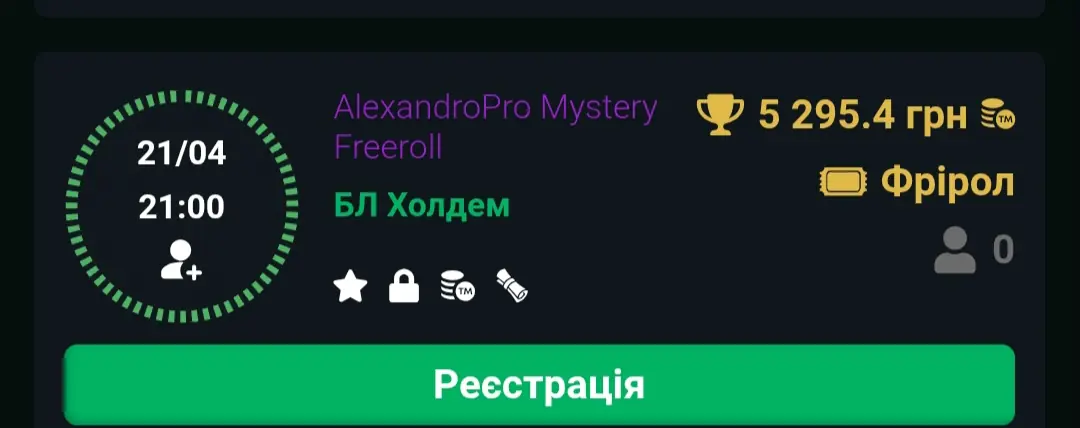 Сьогодні о21:00 AlexandroPro Mystery Freeroll. Пароль буде тут за 30 хвилин до початку.
