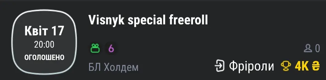 Дякую! Вроді має бути ще фрірол 18/04 на громбет?! Також вроді від вісника?!