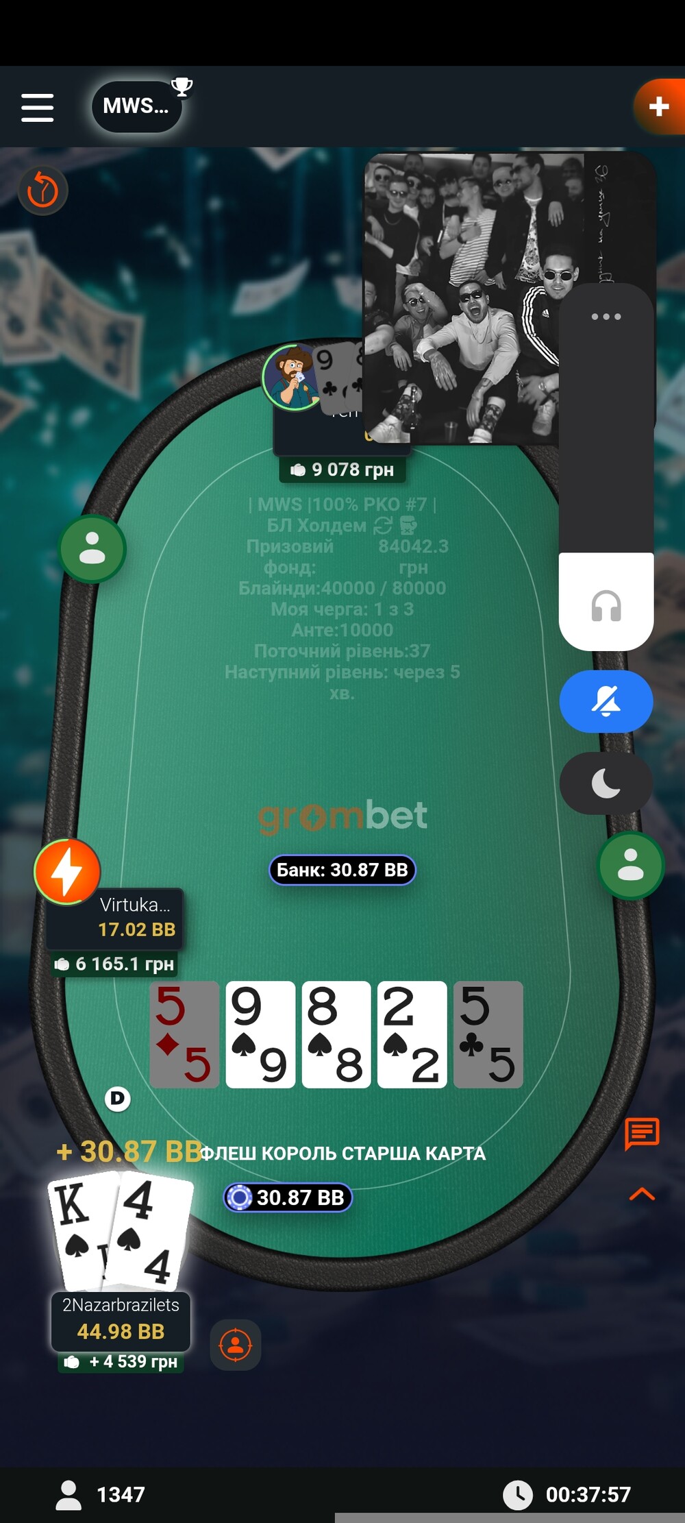 Тільки на переапі Й грати, в цьому турнірі 4 рази карман АА я на Бб всі в пас. 3 рази КК взагалі віддав 40% стека. То як тут не переапатись)))