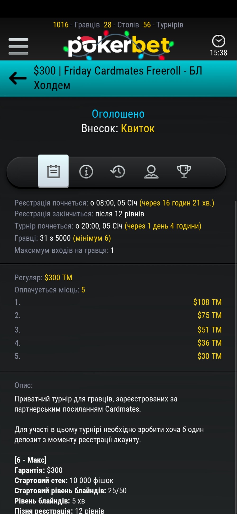 Мене наче не реєструвало в турнірі і бачу що зараз в турнірах 0 учасників. На рахунок ТМ - то звісно біда повна. Їх тільки в турнірах потім відігравати чи і в віндфолах на 3чоловіка можна? Чую буду все заливати назад.