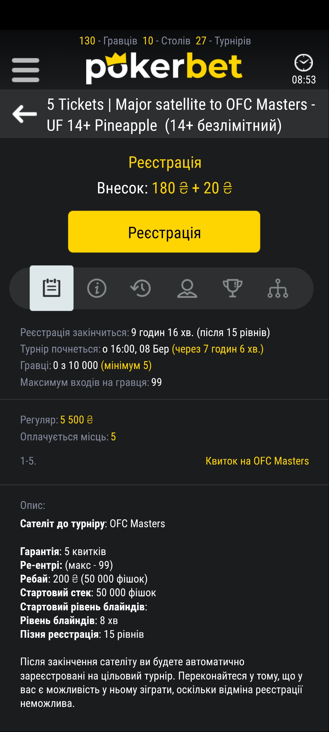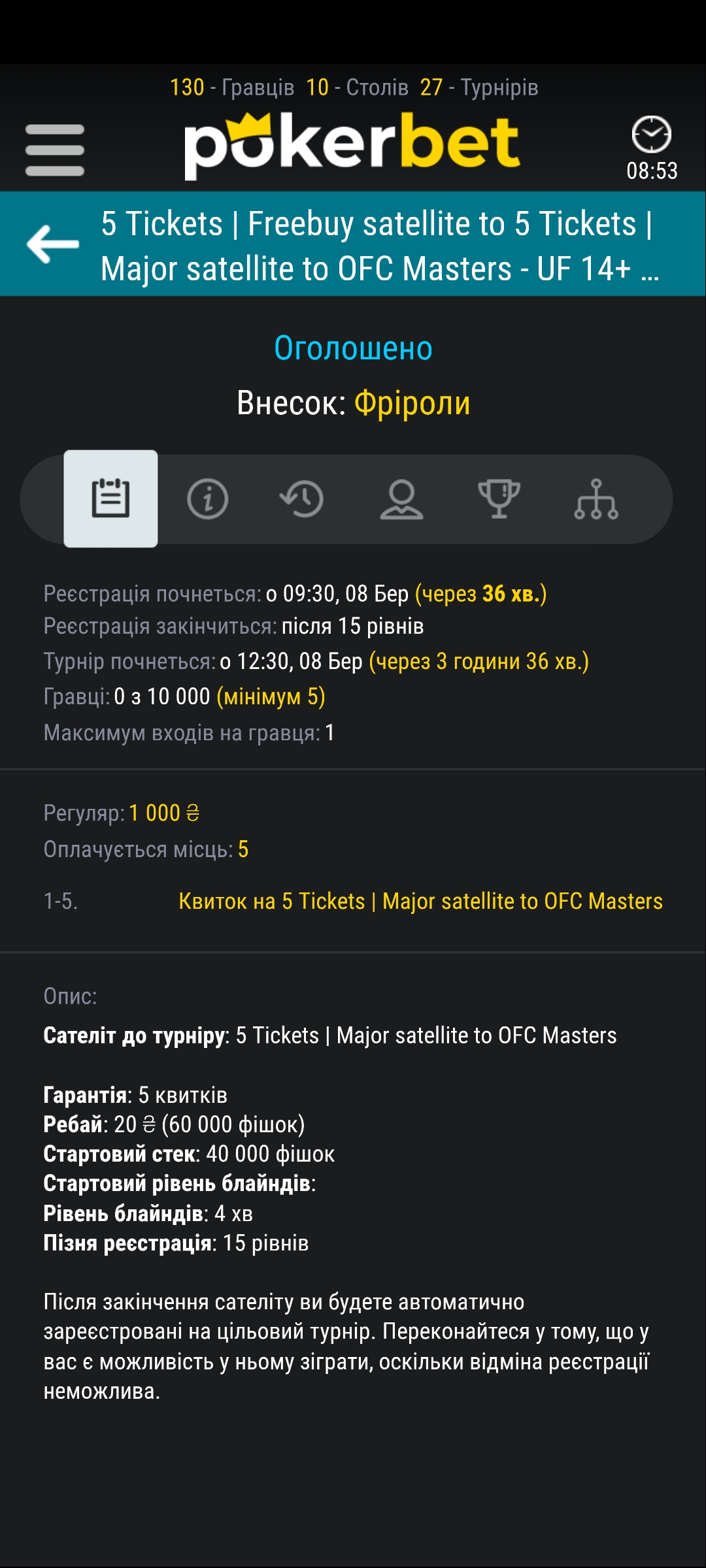 Хто дуже любить китайський покер для вас сьогодні на покербет трьохрівневий квест, першмй сателіт на 5 квиточків на раступний рівень розпочнеться о 12.30.