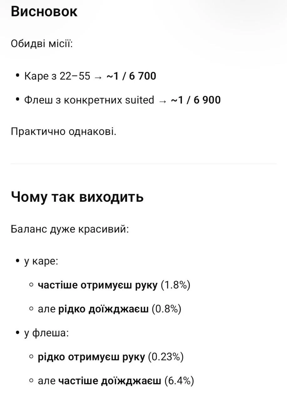 Більшість чомусь голосує за флеш, але ймовірність виконати місію з каре на трішки вища!
