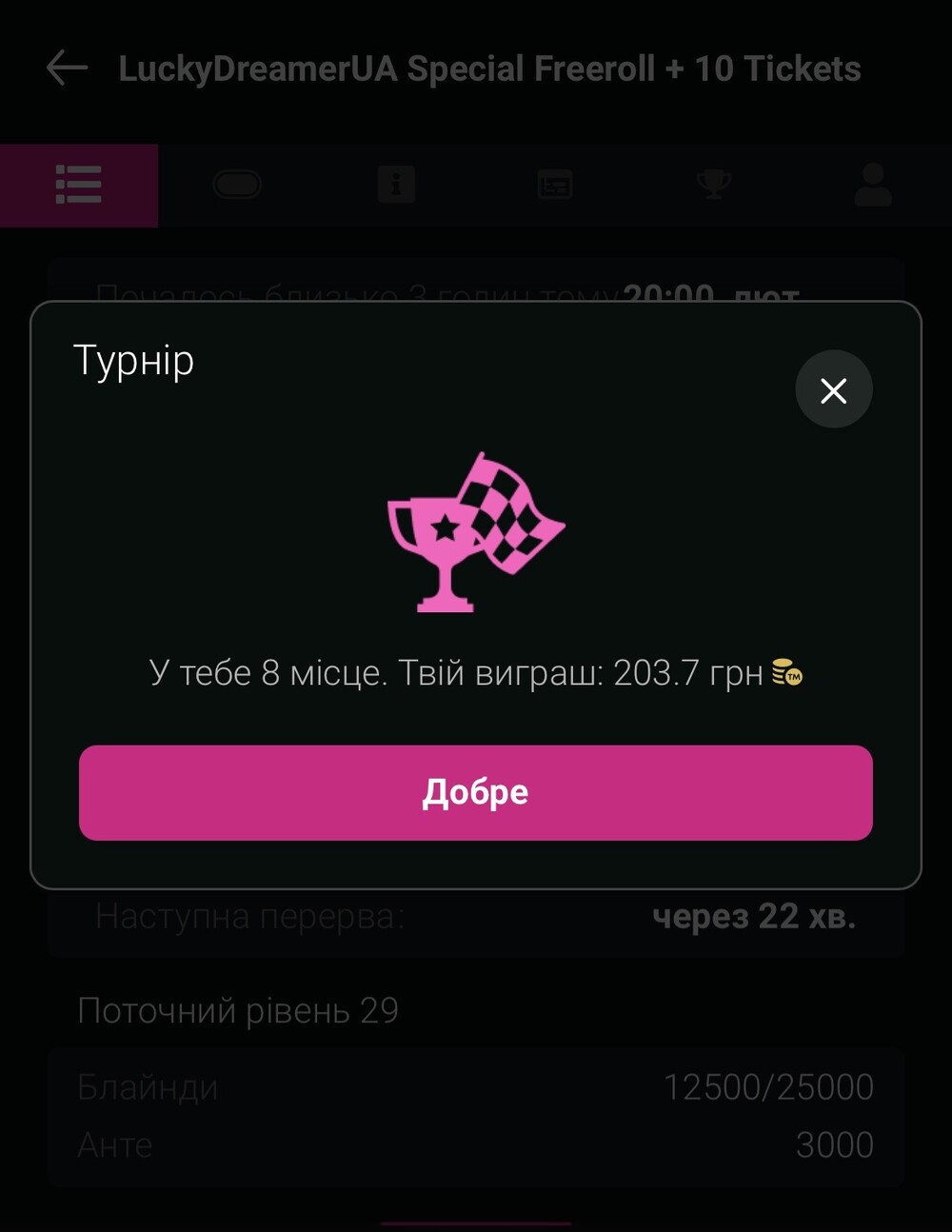 Сьогодні грав фріху, перший раз дожив до призів. Посів 8 місце.