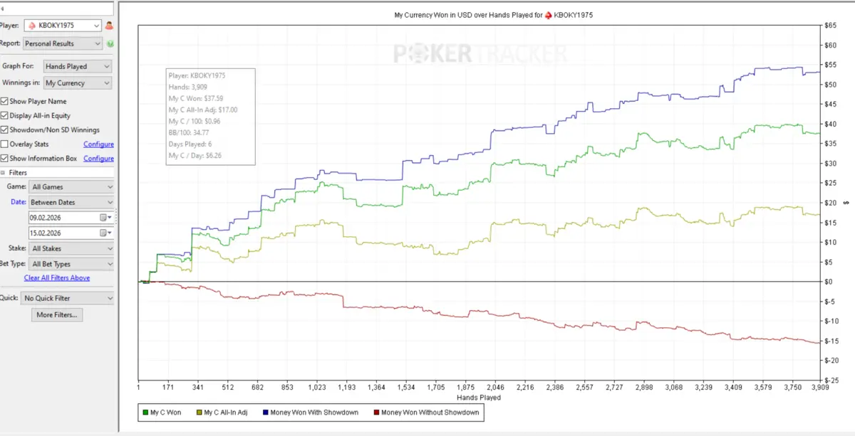 Зіграно 3909 роздач. Загальний профіт +37.45$.