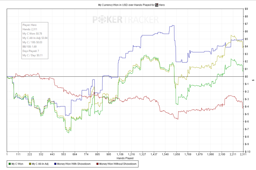 Зіграно 2311 роздач. Профіт 4.12$. Вінрейт 8.91 бб/100