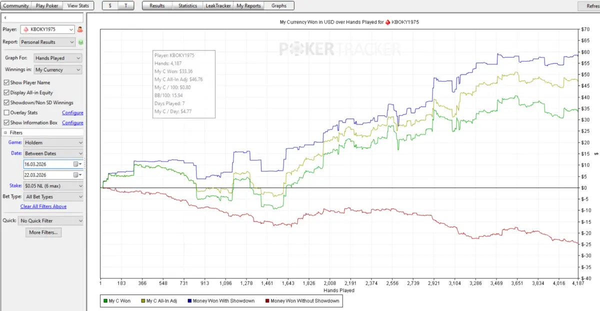 ПС. Зіграно 4187 роздач. Профіт + 33.12$. Вінрейт 15.94 бб/100
