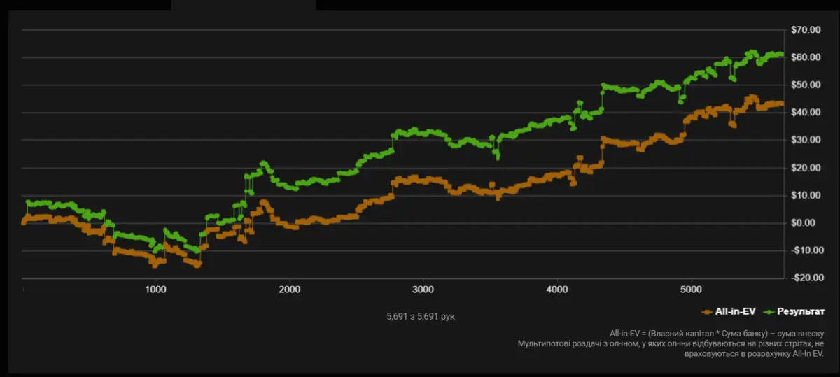 Зіграв 5691 роздачу. Профіт склав +16.02$