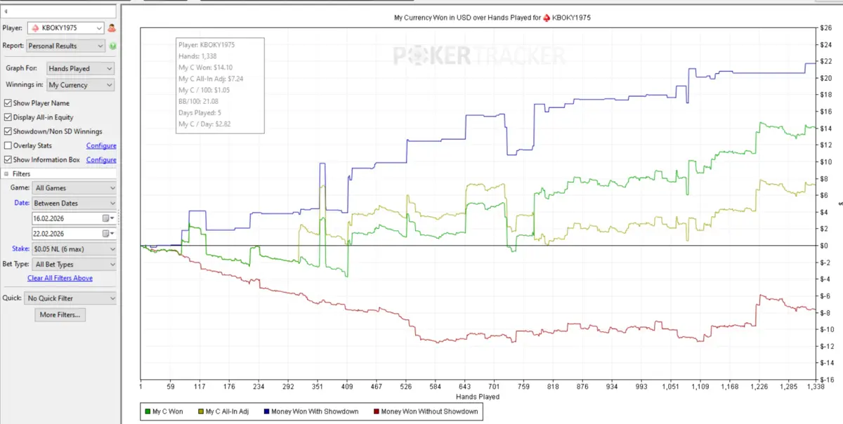 Ну знову ж таки, по лініям видно, що апстрік продовжується, вінрейти більше 20бб/100, тому ейфорії не повинно бути.