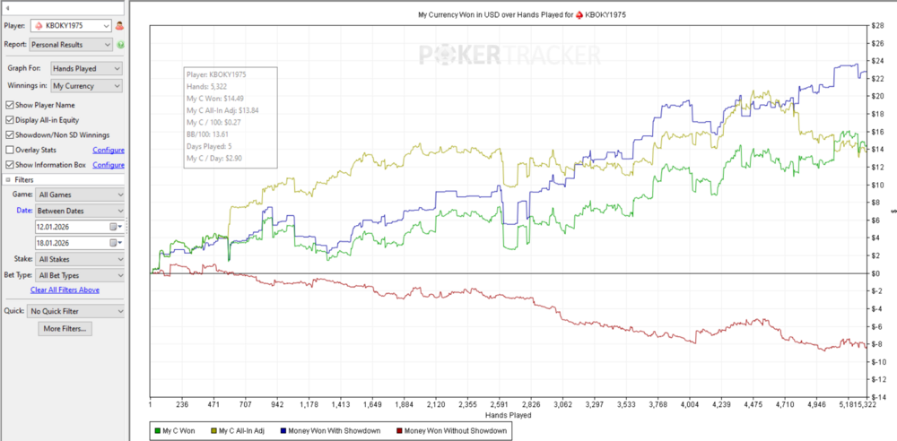 ПС. Відіграно 5322 роздач. Профіт +13.84$ (по касі). Вінрейт 13.61 бб/100 .
