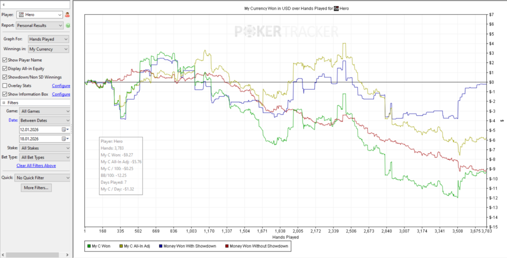 На ГГ катастрофа. Відіграно 3783 роздачі. Профіт - 8.94$ (по касі)