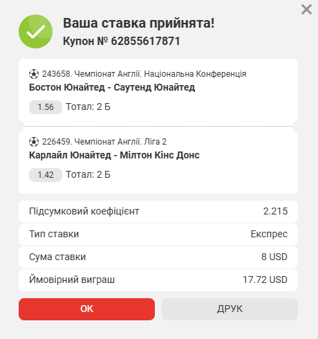 Нац Ліга Англія Обидві команди мають сильну мотивацію, та не менш сильну результативність, з проблемами в захисті. Саутенд перемогою увійде в зону НацЛіги Плей-офф, а хазяї боряться за виживання, показуючи дійсно старанність та бажання вийти із неї, матч за матчем справжня боротьба. Гості крепші за досвідом, але стабільно пропускають, к1 доказує та показує свої вміння забивати навіть там де цього не очікують. Очікую ОЗ. Ліга2 Бук говорить нам про те що тут ТМ, я тут бачу як мінімум по 1-му голу від обох команд. Підкреслю, поганий захист, а також положення к1, боряться за виживання, і це видно, команди дали бій, та не легку гру фаворитам таким як Вімблдон та Воллсол, які находяться в ТОП1, ну і величезна іх проблема це захист. Якщо к1 проти топів дає бій, то гості навпаки себе дуже важко почувають, що дає нам знати про те що хазяї готові боротись та забивати. Гості, особливо на виїзді, показують дуже погану гру від захисту, але є +, вміють забивати слабо захищеним командам, якою одною їз них є к1. Якщо проти топів не забити, то як тільки попадається команда більш слабкіша з гіршим досвідом, гості відразу відкривають свій потенціал в нападі та створенню небезпечних моментів у воріт суперника. Щасти!
