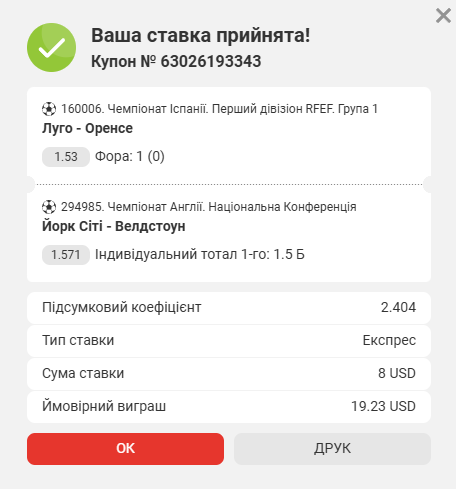 Луго-Оденсе Дивлячись на обидві команди бачимо іх сильний склад та вміння забивати, вміють давати бій навіть проти топових міцних команд. На мій погляд, дивлячись на те що к1 будучи на виїзді перемогла та не пропустила від топ2 Понферрадіна, можливо матч пройде по такому ж сценарію, враховуючи акуратну гру в захисті та ловлячи суперника на контр атаках. Є також великий шанс на те що гості також зуміють пробити 1 гол, але питання в іншому, чи дасть одна одній себе перемогти? схоже більше на ні, але якщо к1 діятимуть як зазвичай, то можливо заберуть матч перемогою, в основному матч схожий на нічию, з невеликим плюсом в бік к1. Йорк-Велдстоун Топ проти явного аутсайдера з поганим захистом. Гості пропускають в 80% випадків, із них 60% по 2 гола+. В останньому матчі Йорк пробив захист домашнього Рочдеїл забивши цілих 4 гола. Думаю пробити 2 гола аутсайдеру виглядає більше чим реальним для такої команди. Щасти! 🍀