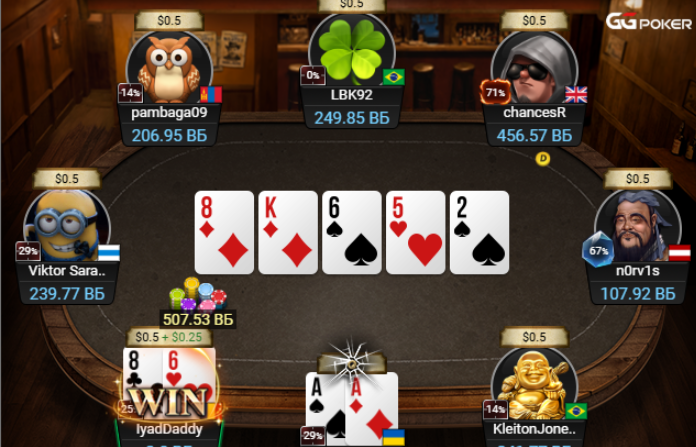 На другу сесію задепав на ГГ і катав уже три руми, гру на ГГ можна описати цим скріном: Поїхали префлоп.