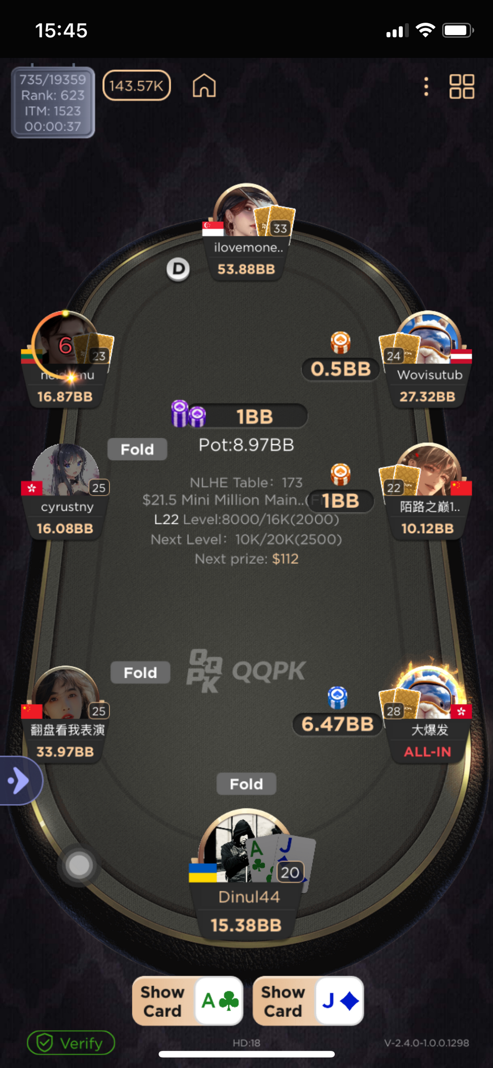 Да Бро, з таким маленьким стеком я вирішив тільки пушити! За весь час жодного разу постфлоп не зіграв) Фолдив такі руки, як: