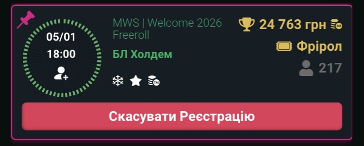 Розпочато регестрацію MWS | Welcome 2026 Freeroll