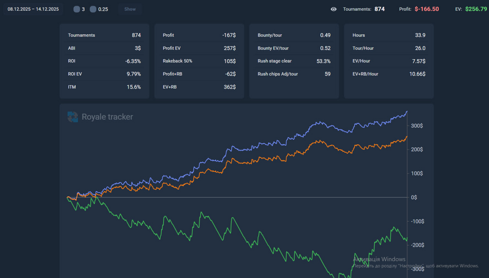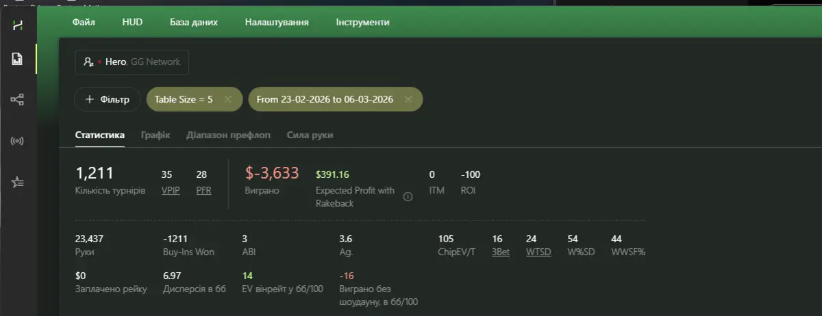 Дві попередні неділі я стабільно грав по 6 столів і показники були дуже навіть приємні — рівні, спокійні, без жодних гойдалок.