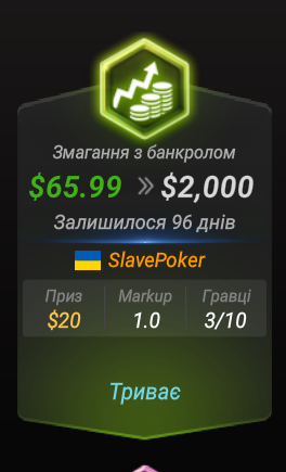 дякую, один раз ловив 100х на 7000 турнірів зіграних а так кожного дня 10х падає ) у мене була просадка на 3 ліміті 600 д 300 баїнів треба для комфорту