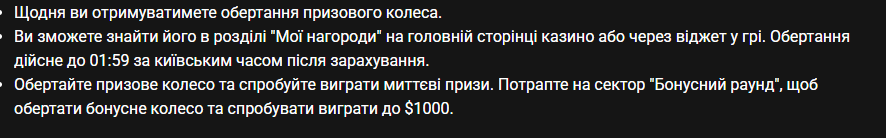 Заліз на сайт, пошукав, бачу акцію типу колесо за поповнення, але самого колеса нема...