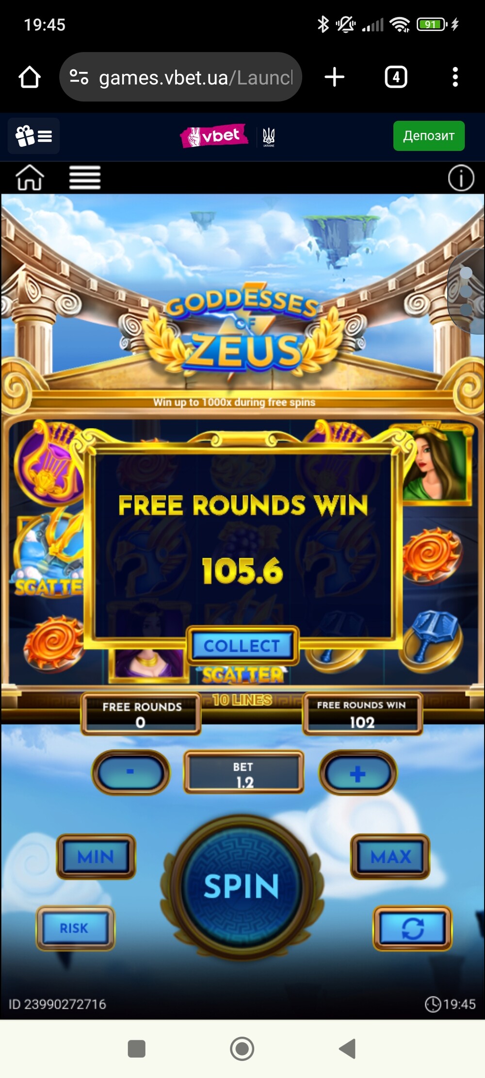 Там випало три скатера на 8 фріспінів ще, сім з тих восьми були до одного місця, а один дав в районі 100 гривень, скринів не робив... В підсумку вийшло так :