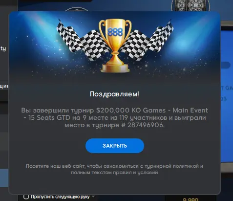 Грав тайтово агресивно! Рідко приймав участь в роздачах! Тому декілька разів вибивав опонента блефом не маючи жодного попадання!