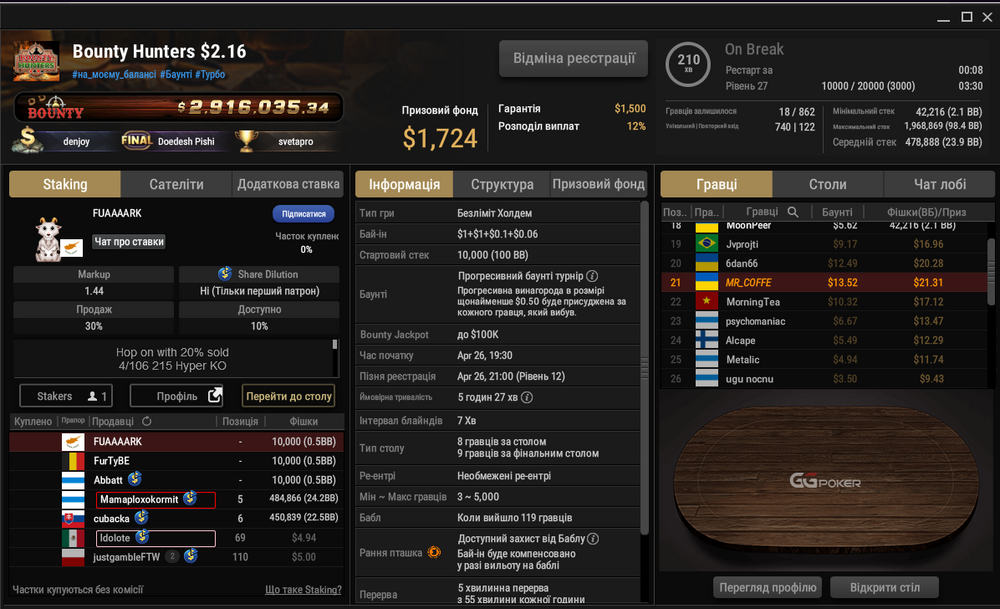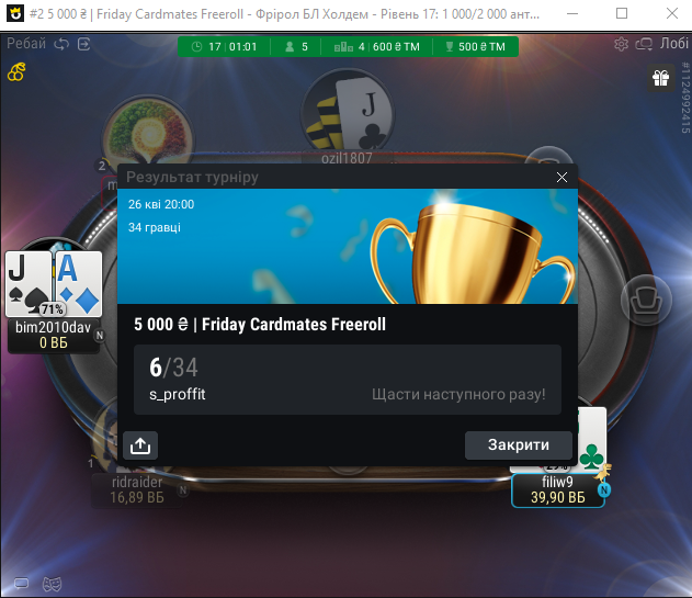 З команди в іншій лізі наш братуличка чіпаком на фіналку зайшов з величезним стеком, бажаю йому удачі!!!