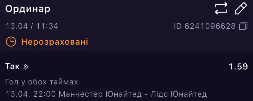 У матчі МЮ - Лідс я теж вірю в атаку, бо оборона у обох колективів не дуже, а значить голів має бути достатньо. Ставка на гол в обох таймах: