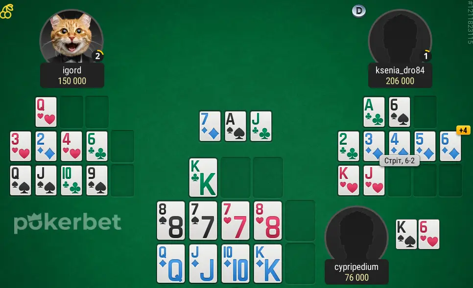 Я б зіграв А піковий низ, валет наверх, тобто чекав би короля в останьому раунді. Але я не ананасівець.