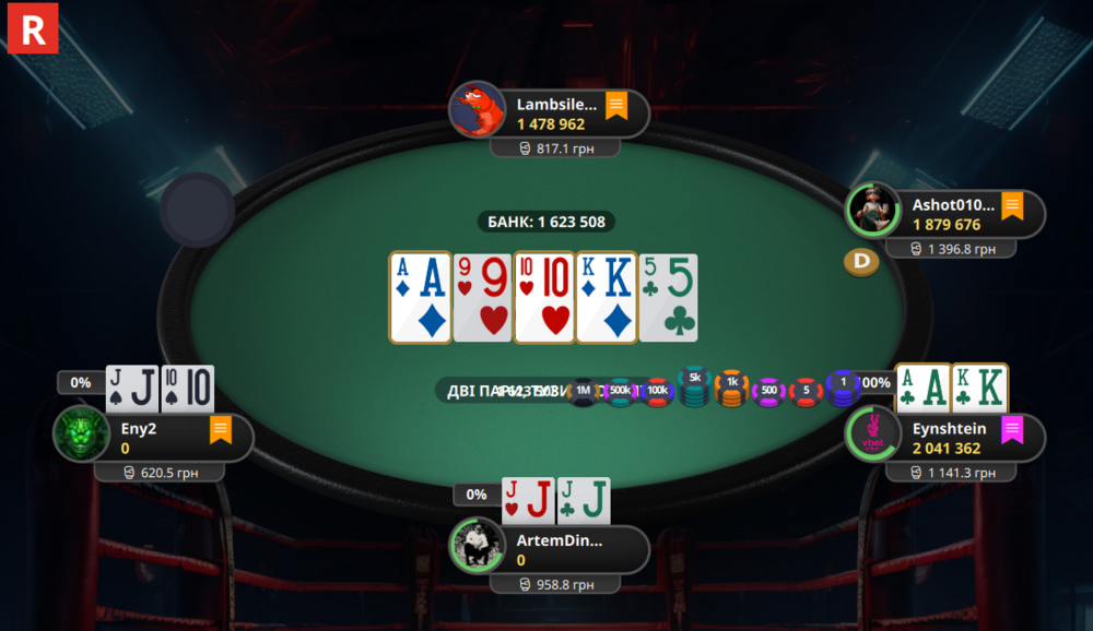 Зайшов на наприкінці пізньої регістрації з коротеньким стеком. Зробив два входи. Загальний час турніру 4 г 48 хв. Кількість входів 175.