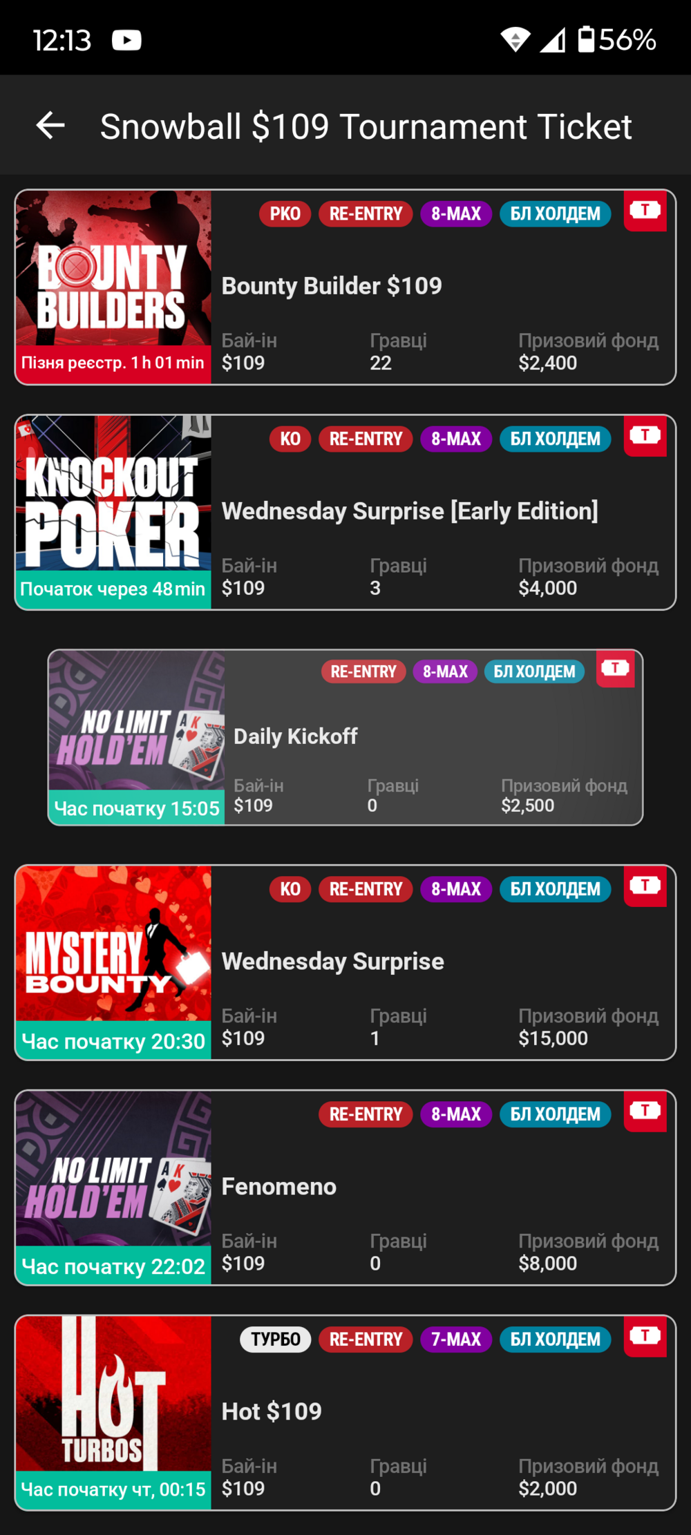 Багато турнірів на різні призові.