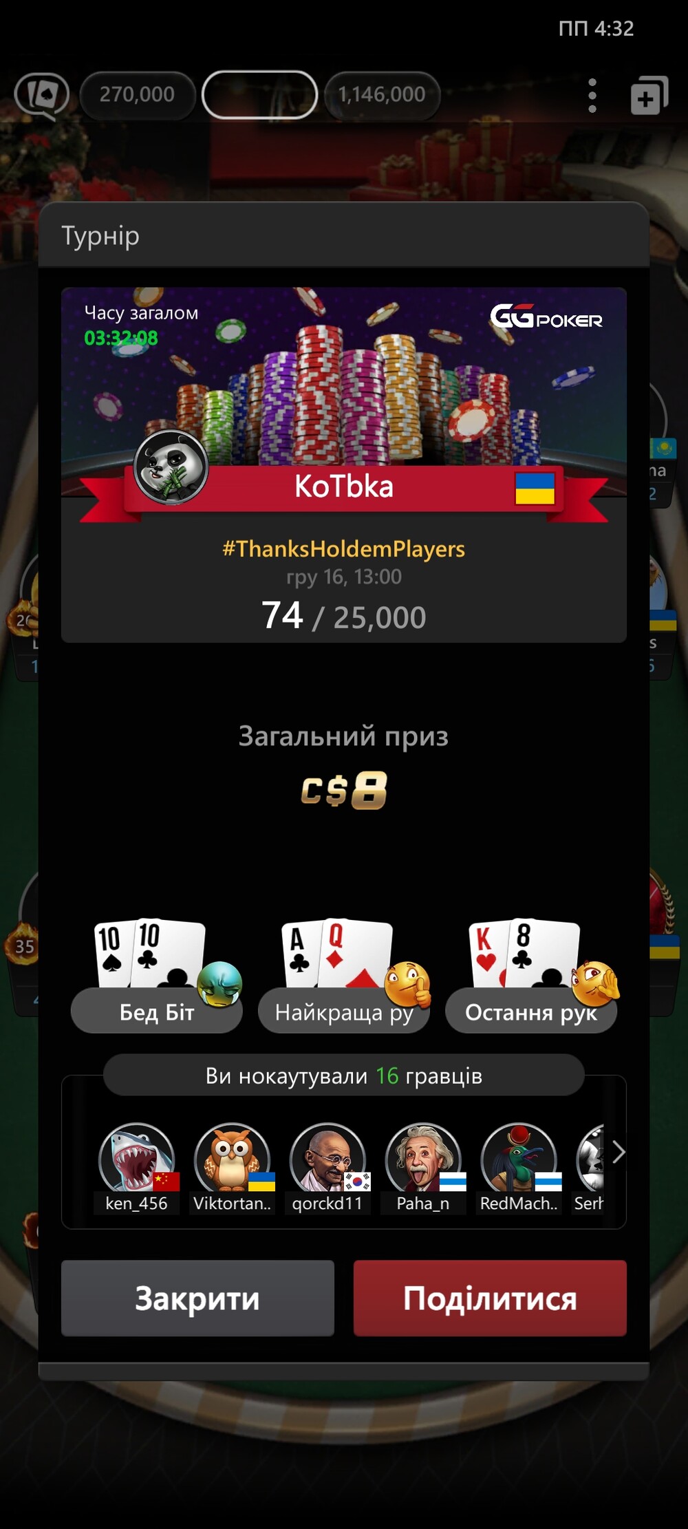 та я краще встану раніше. вилечу і піду досипати. але хоч шас якийсь є до призів доїхати. а то враження що люди не дивилися що всі турніри по 3к призових місць мають. як медом помазано в одному турнірі всім