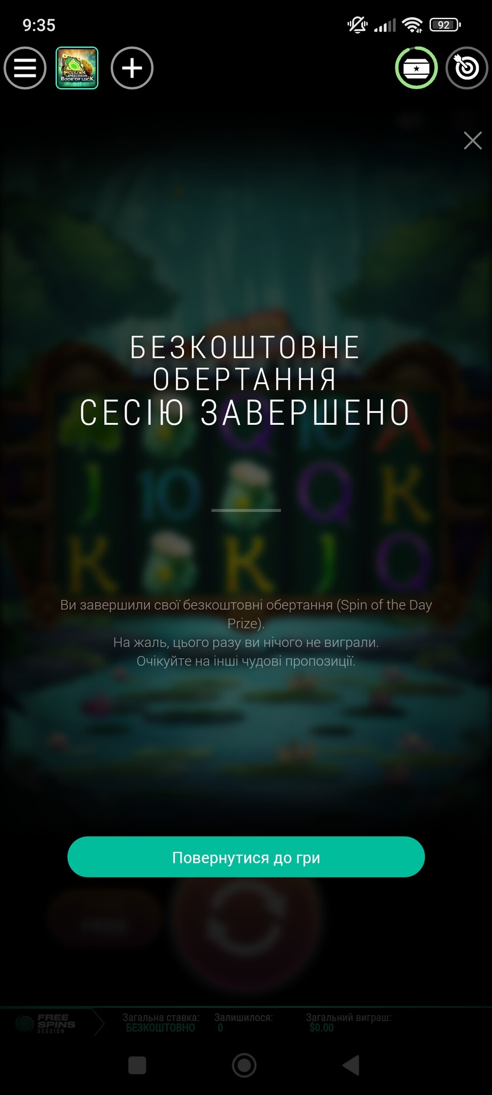 У мене там щось чорний екран на вкладці казино!