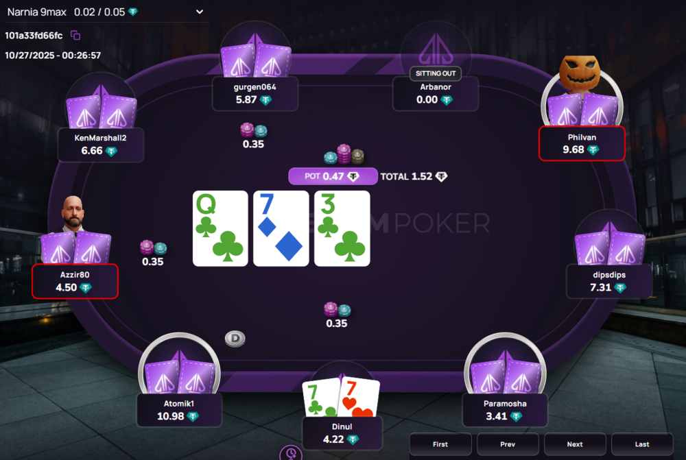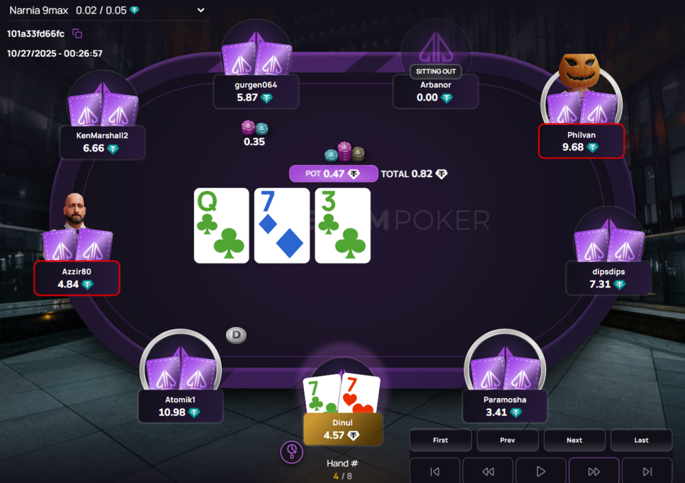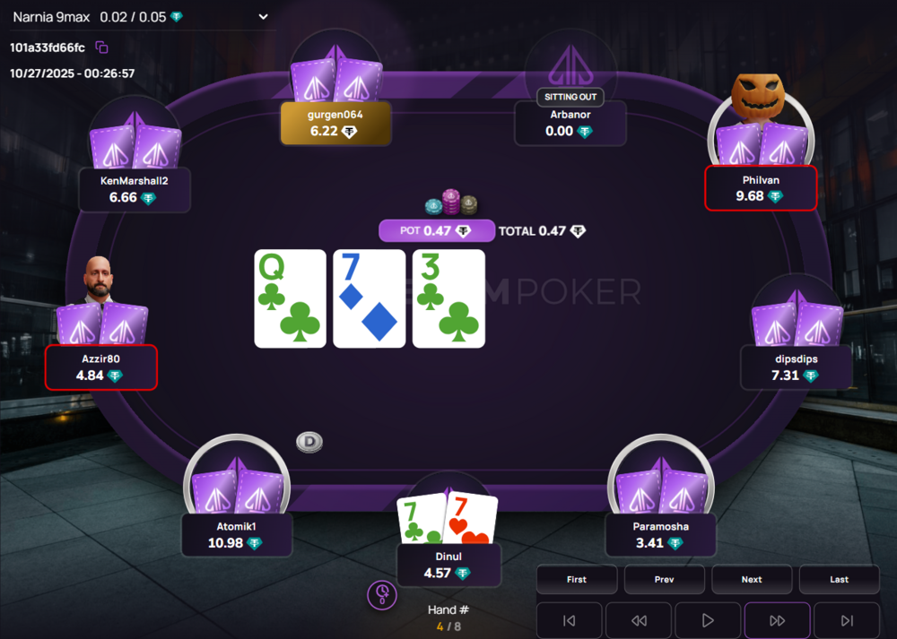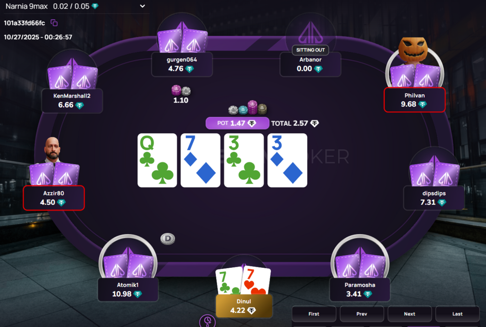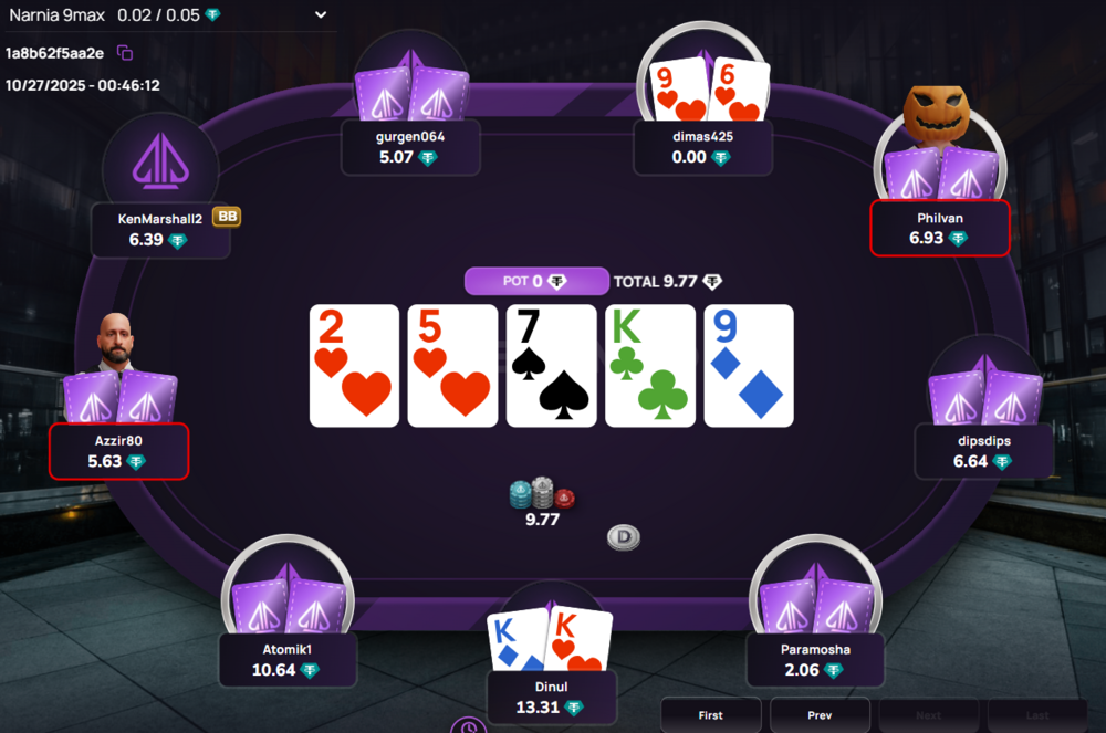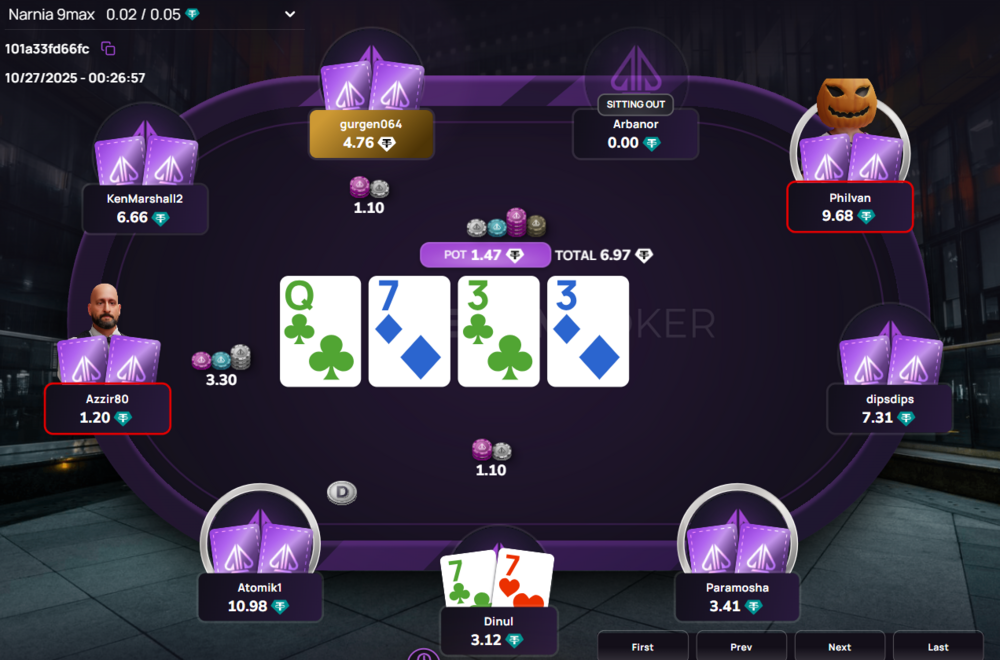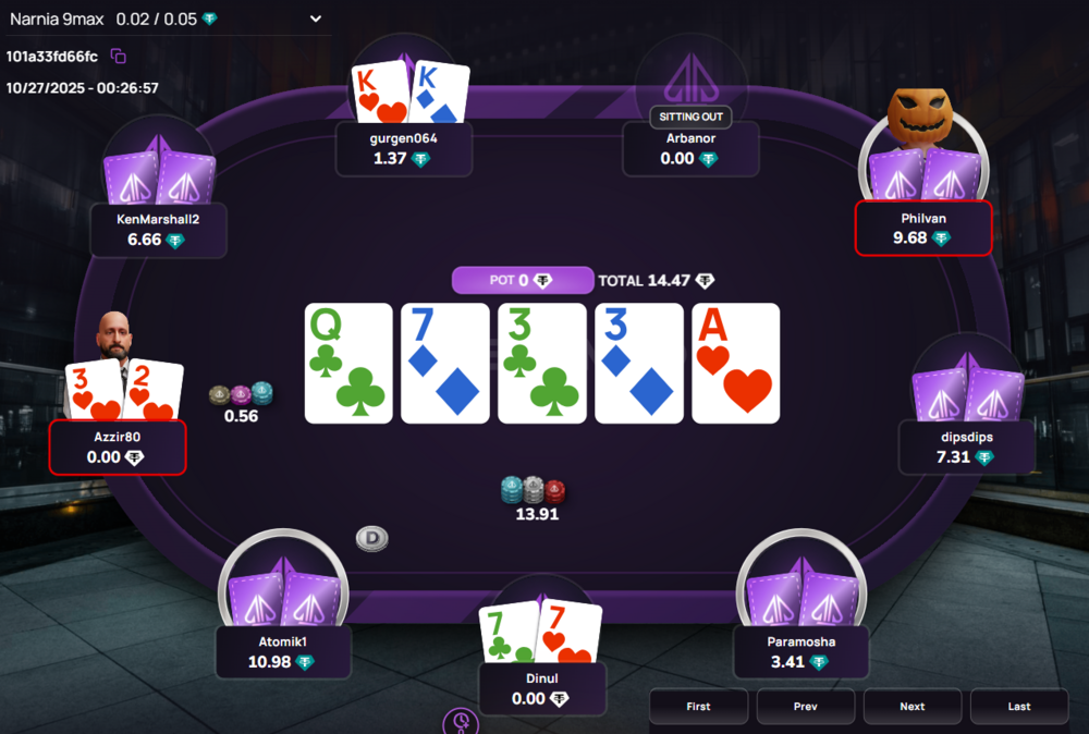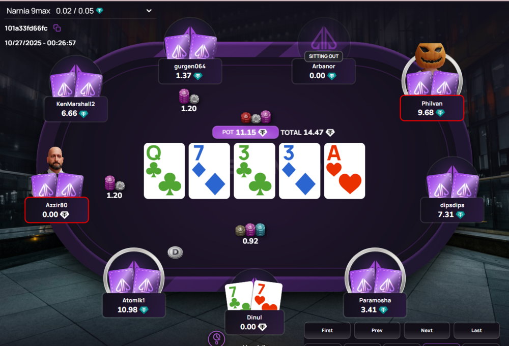 Сьогодні другий раз спробував пограти у незнайому для мене дисципліну, а точніше мікс з п'ятьох видів покеру: "2-7 Triple Draw","Limit Omaha 8/b", "Razz, Seven Card Stud", "Stud 8/b". Коротше кажучи знайомий я тільки з омахою але трохи. Вчитися почав в процесі гри, зрозумів, що в "2-7 Triple Draw" треба збирати менші комбінації ніж в противників, дуже сподобалася гра. В наступні ігри "дупля не відбив", просто фолдив кожну роздачу і чекав наступну дисципліну))