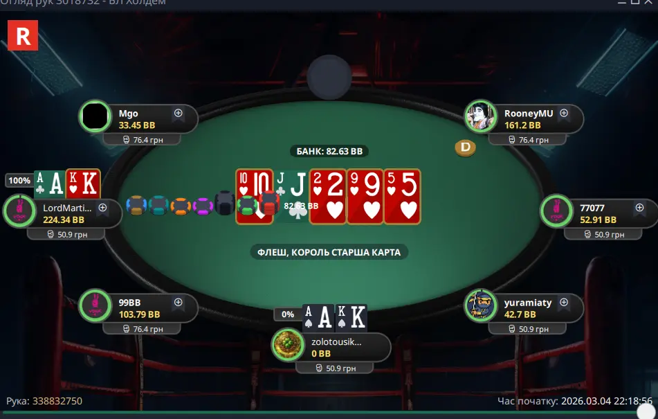 Я як тільки починав грати, виграв квиток на якийсь мейн на вбеті. Під час турніру двічі програв АА в АА😆