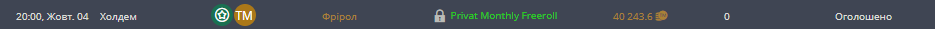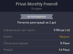 В цю суботу 4 жовтня о 20:00 відбудеться Privat Monthly Freeroll з гарантією ₴40,000 ТМ