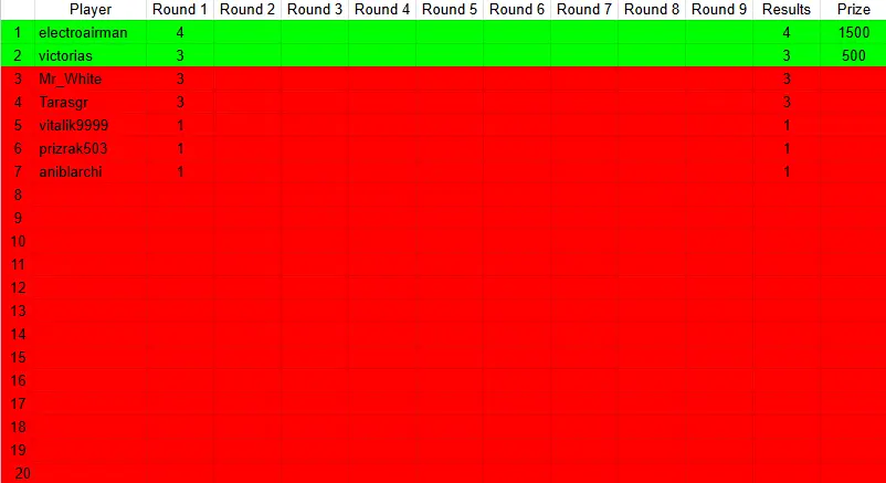 Таблиця результатів ліги "Pro Fan"