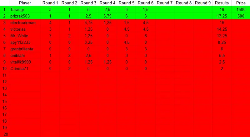 Таблиця результатів ліги "Pro Fan"