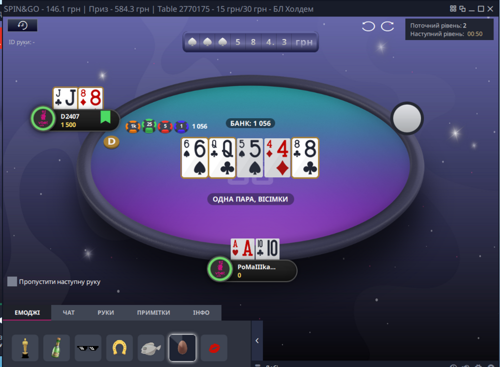 зайди зара, вони ще грають, одні і ті самі. І одні і ті самі виграють на любій карті. Тільки що, сусіда на 45о вибив, мене на Д8о. 2 олл ина і все тіп в шоколаді
