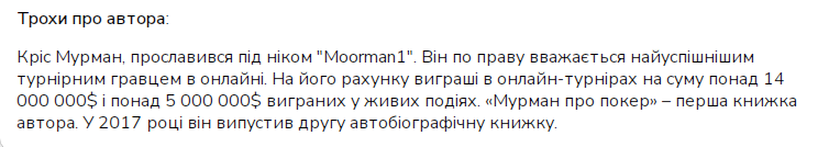 Нє, ну є норм я не читаю слухаю, книжки, то є норм для дисципліни типу, в основному слухаю такого типу книги на фоні чи переслухую на роботі https://cardmates.ua/knigi-po-pokeru/dzhared_tendler_poker_igri_rozumu,