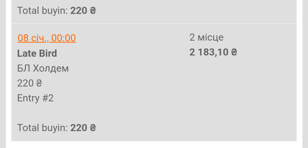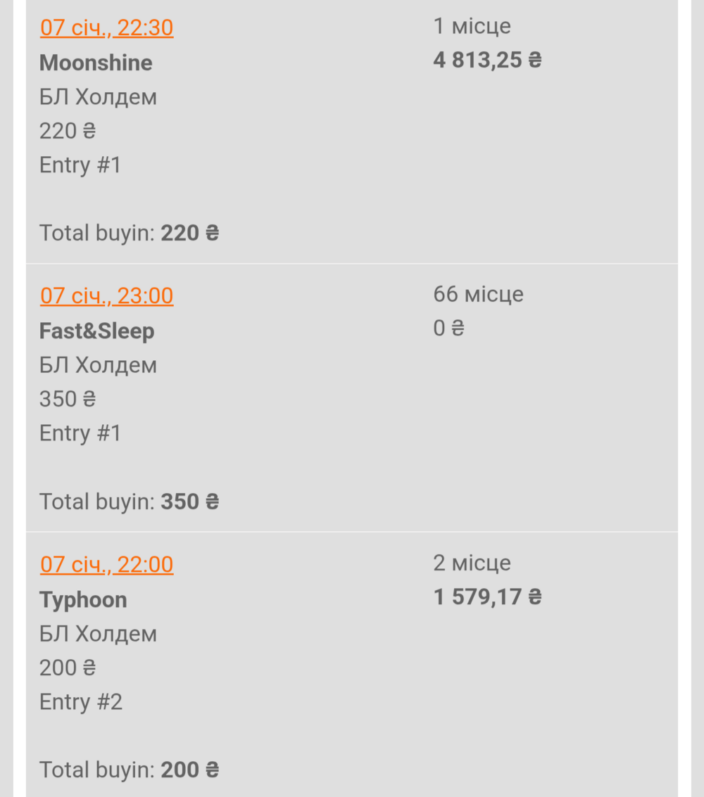 В цьому турнірі все складалось прям ідеально з першого пострілу, гарно добирав з велью, виходили гарні ранаути для блефів і т.д., хоча в моменті десь перед баблом залишався з 15 бб) В інших турнірах довелося зробити по два входи, але результат вийшов того вартий: