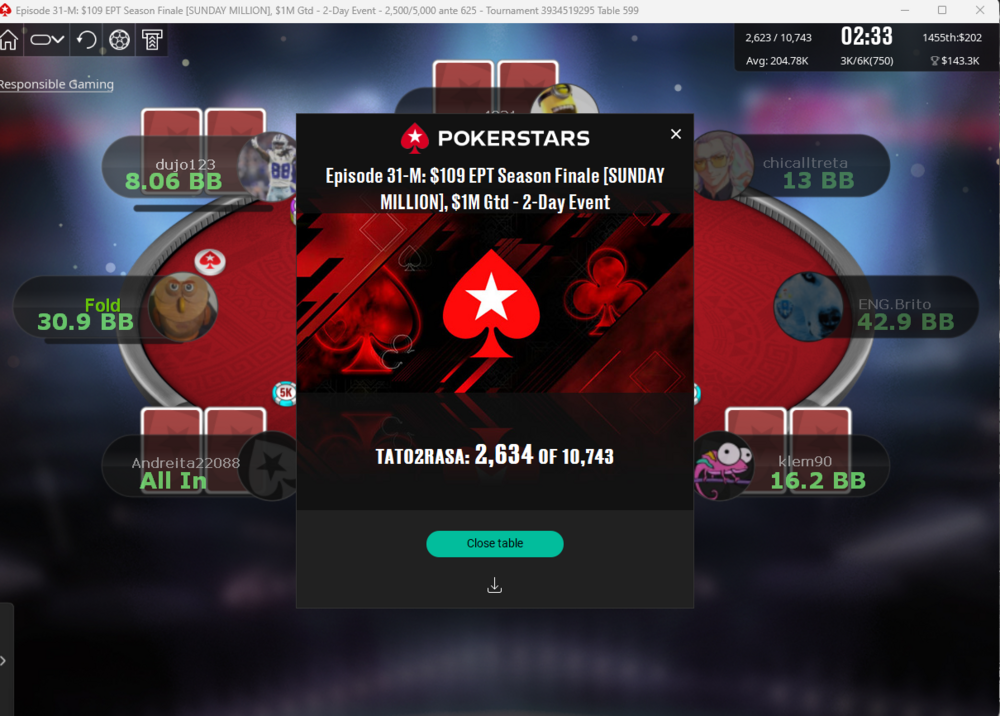 Якщо коротка..на ПС , по программі лояльності, якимось чудом,сам того не замітивши (виграв ланцюжок турнірів,останній по 11 закінчив на 1 місці) я попав в турнір по 109 .