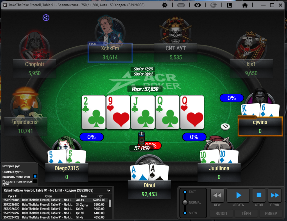 Турнір тривав з 22:30 по 4:00. Кількість учасників: 1240.
