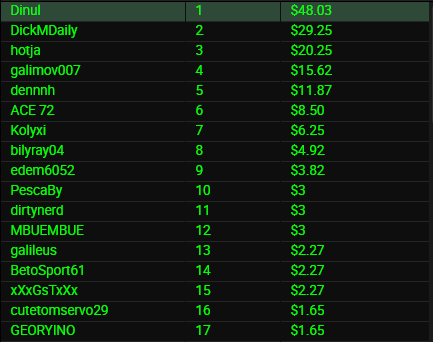 Турнір тривав з 22:30 по 4:00. Кількість учасників: 1240.
